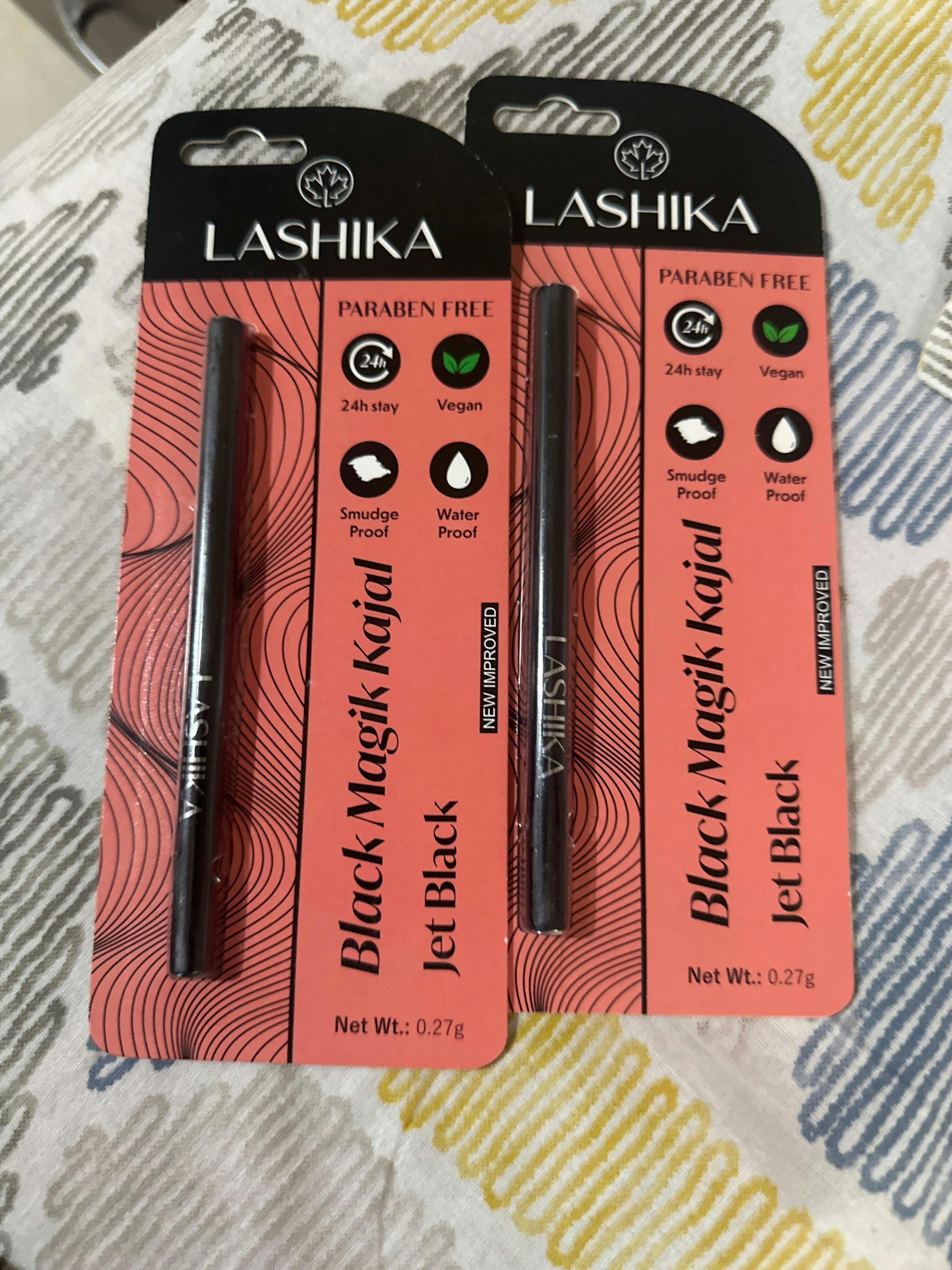 Black magik kajal Lashika is nice. Smudge-proof and bright black. Long-lasting and waterproof. Worth purchasing. Try it out.