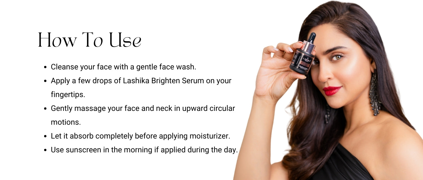 2. Apply a few drops of Lashika Brighten Serum on your fingertips.