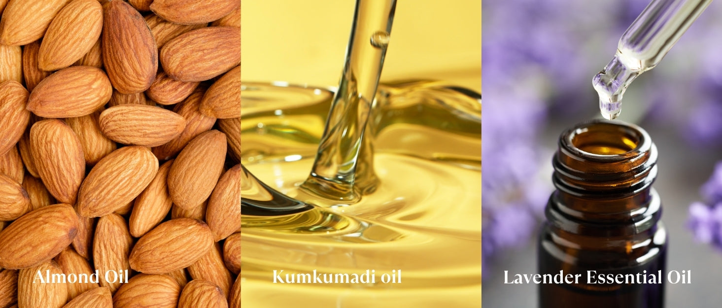 The blend of Kumkumadi Oil, Almond Oil, and Grape Seed Oil works to fade dark spots, even skin tone, and enhance natural radiance.