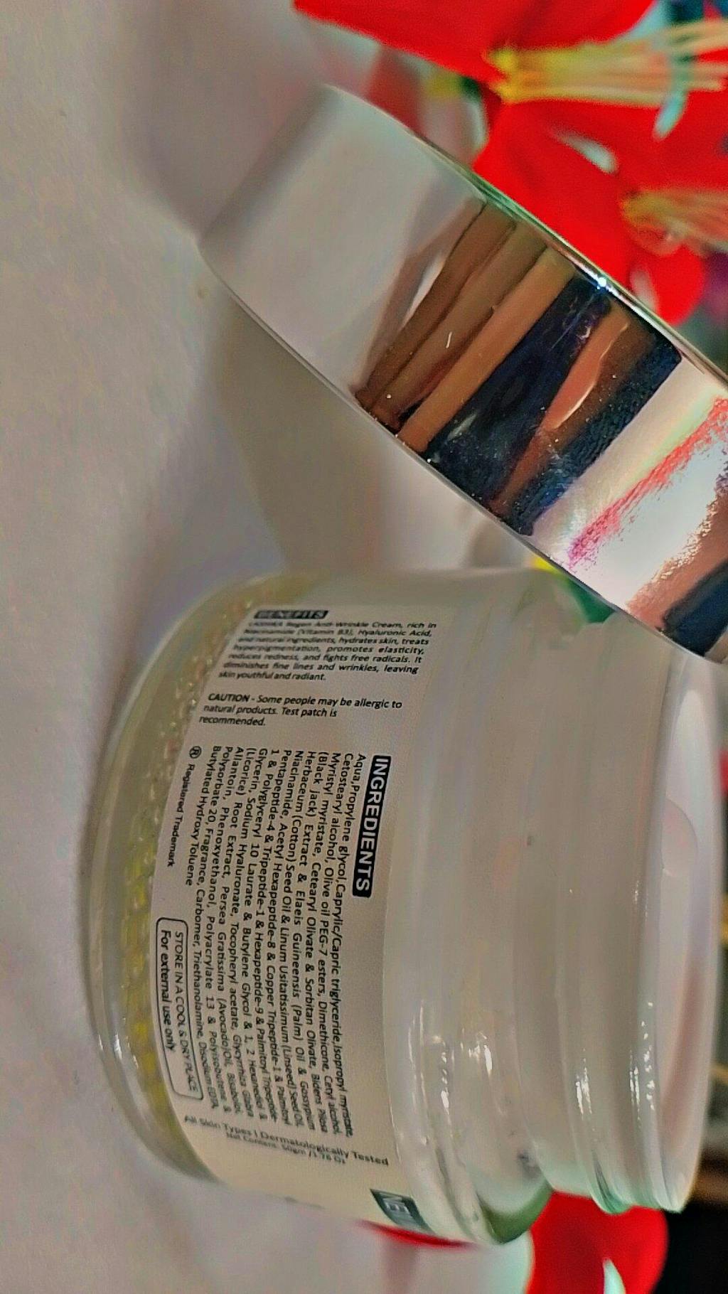Hyaluronic Acid, Moringa Oil, Olive Oil, Jojoba, Vitamin B3