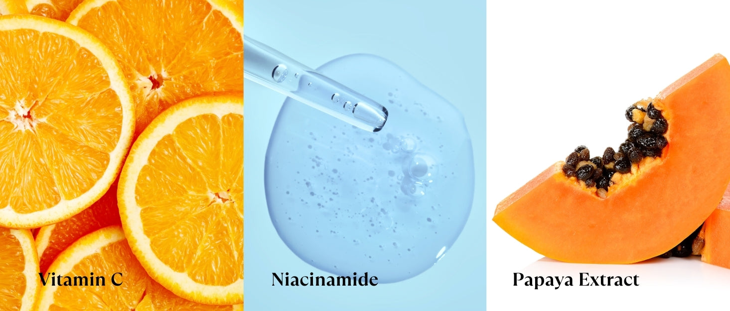 Brightens skin and evens skin tone.